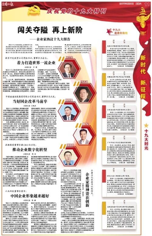 2017年10月21日出版的《經(jīng)濟(jì)日?qǐng)?bào)》,在《慶祝黨的十九大特刊》版面(11版),以“企業(yè)家熱議十九大報(bào)告”為主題,刊登了五位企業(yè)家的采訪報(bào)道。其中,報(bào)道集團(tuán)黨委書記、董事長(zhǎng)馬正武的題目是《當(dāng)好國(guó)企改革馬前卒》。全文如下: