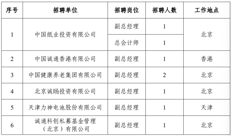 中國誠通所出資企業(yè)高級(jí)管理人員公開招聘公告